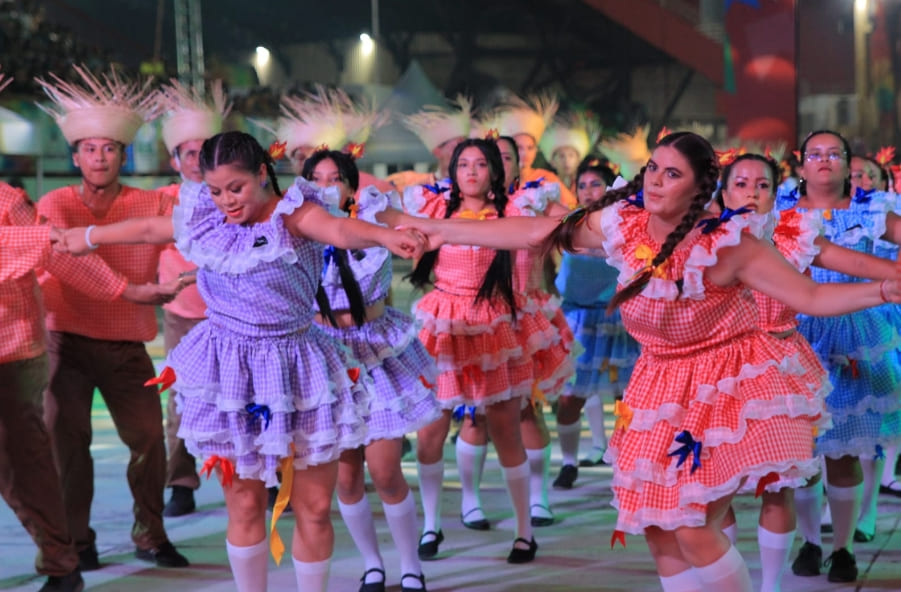 A primeira noite de Festival Folclórico foi um sucesso. O espetáculo continua neste sábado (14), a partir das 19h, no Anfiteatro Sila Marçal com a disputa de quadrilhas das Chaves C e D.