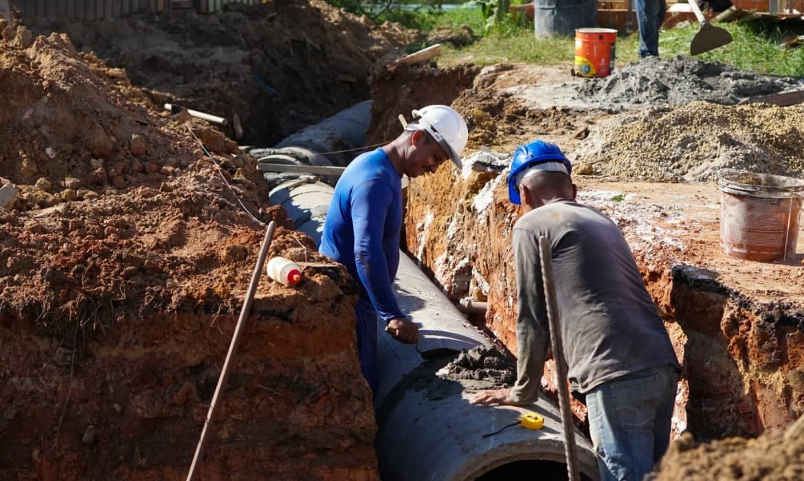 Obras de drenagem seguem em ritmo acelerado na rua que dá acesso ao clube Cabos e Soldados