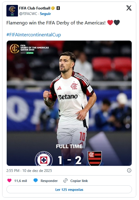 O Flamengo levou a melhor no difícil Derby das Américas contra o mexicano Cruz Azul e selou a classificação à semifinal da Copa Intercontinental. Em tarde inspirada nesta quarta-feira (10), o atacante uruguaio Giorgian de Arrascaeta marcou os gols da vitória do Rubro-Negro carioca, por 2 a 1, no Estádio Ahmad bin Ali, na cidade de Al Rayan (Catar). Além da vaga na semi, o triunfo garantiu ao Flamengo o troféu Derby das Américas (campeão da Libertadores X vencedor da Champions da Concacaf).