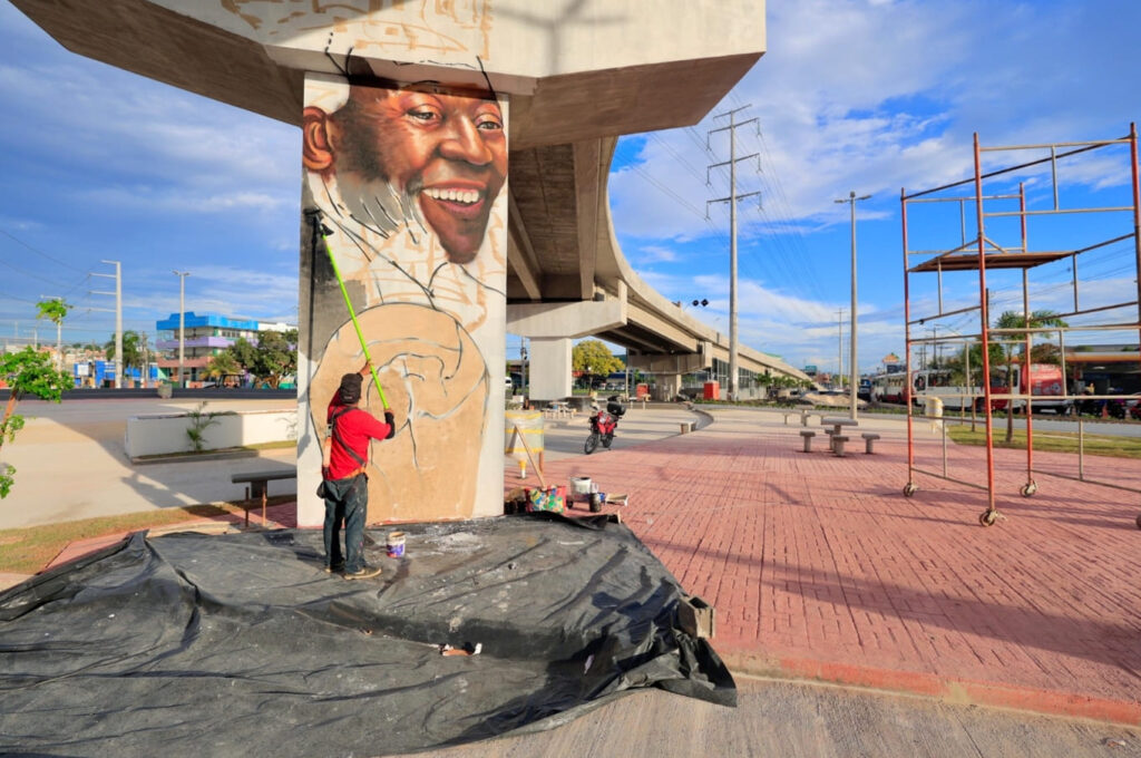 Além do grafite, o novo complexo Rei Pelé contará ainda com quadras esportivas, playground, pista de skate, área de caminhada, espaços de zumba e até ringue de boxe, tornando o antigo cenário de acidentes e congestionamentos em um ponto de encontro para lazer, esporte e cultura voltado para toda população.
