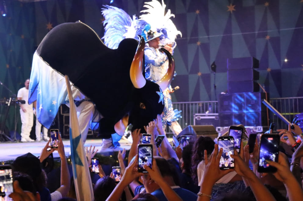 No palco, itens oficiais do boi deram vida a um recorte da cultura amazônica, com toadas, coreografias e elementos cênicos adaptados ao espaço do evento. Durante o momento simbólico do acendimento da árvore, a porta-estandarte Marcela Marialva participou da cerimônia, representando as cores azul e branco em um dos pontos altos da noite.
