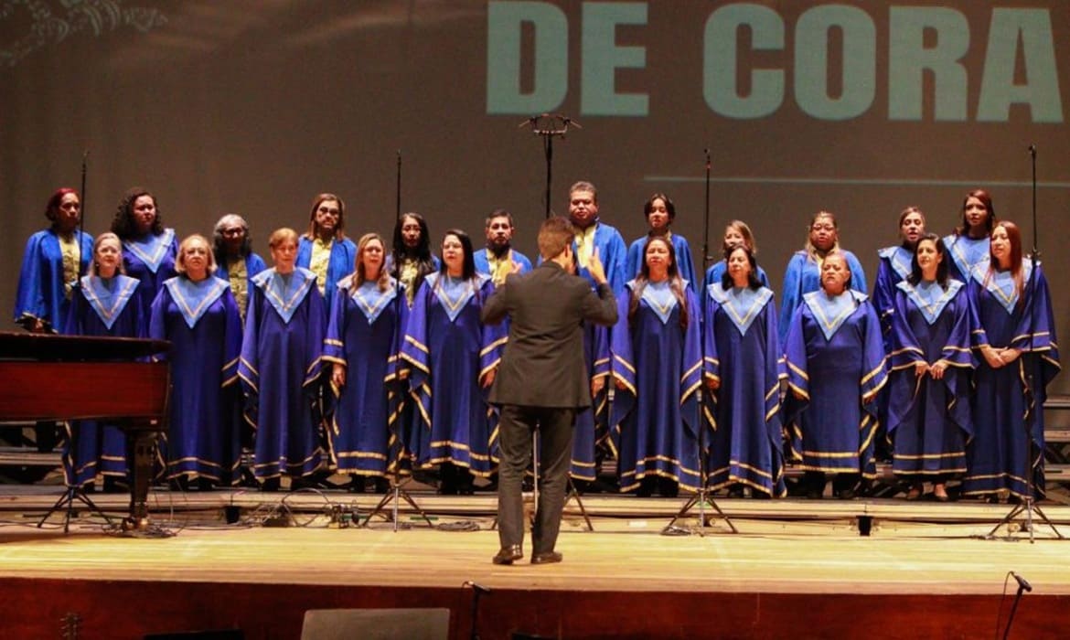 Com pouco mais de um mês de preparação, os 25 integrantes do coral emocionaram a plateia em uma apresentação de 10 minutos