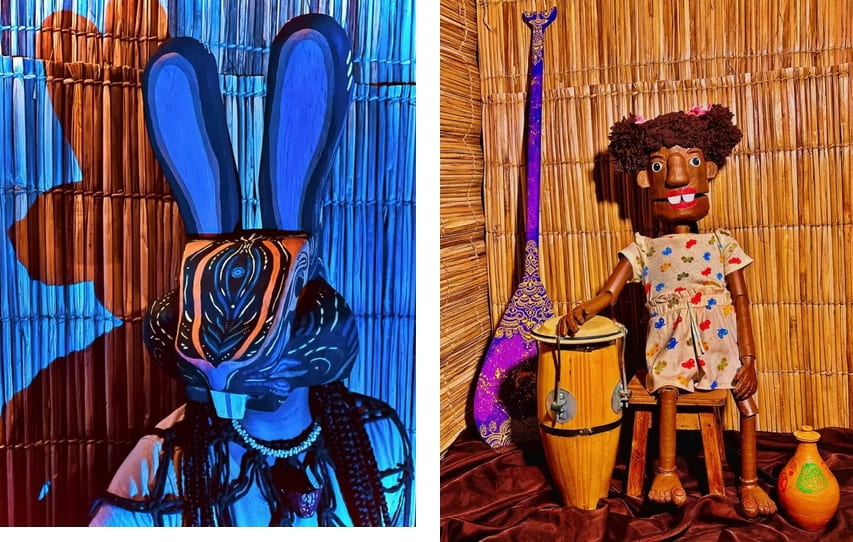 Com bonecos e cabeças de personagens feitos em papelão, pela artista visual Manuella Nogueira, além de narizes feitos com caixa de ovo pela palhaça Laysa Souza, a montagem tece o caminho da Coletiva comprometida com uma cena mais sustentável, poética e afetiva.
