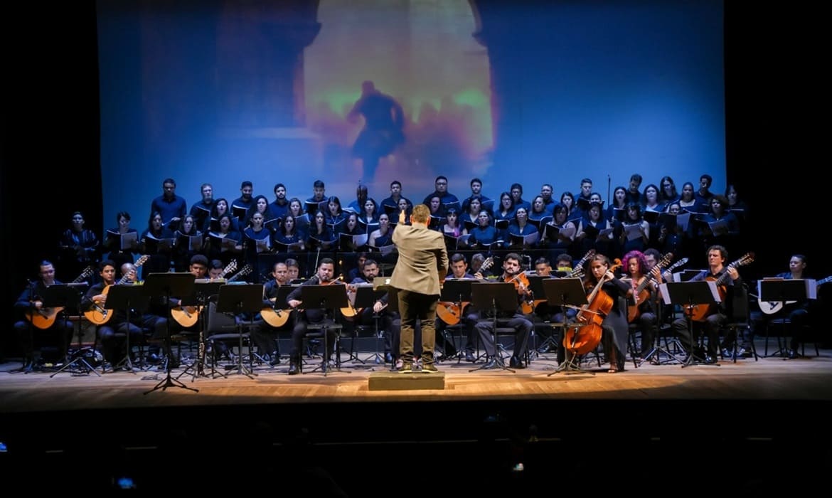 Concerto reúne sucessos do cinema e da TV em noite emocionante com casa lotada e participação do Coral Adulto do Liceu de Artes Claudio Santoro