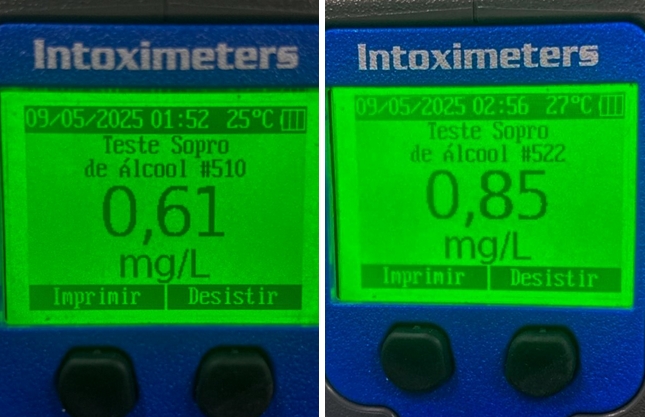 Os condutores presos foram encaminhados ao 6º DIP, e apresentaram taxas de alcoolemia entre 0,46 mg/L; 0,61 mg/L; 0,63 mg/L; 0,68 mg/L; 0,72 mg/L e 0,85 mg/L, por exemplo. A operação também registrou 48 autuações, com quatro carros e seis motos removidas.