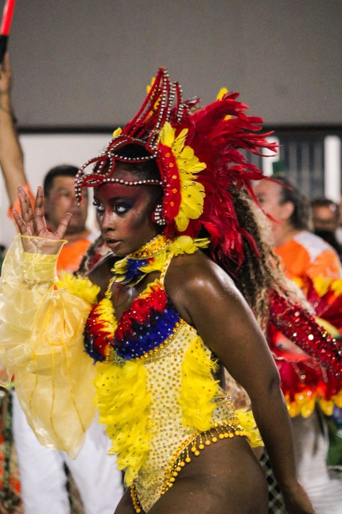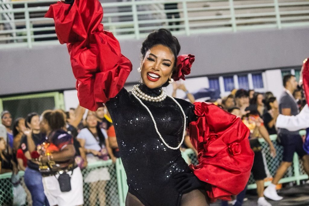 Já a rainha de bateria Arleane Marques destacou o simbolismo do galo como expressão de força, resistência e luta coletiva, refletindo a união da comunidade da escola. “A nossa comunidade se faz presente. O galo representa força, resistência e luta, e através de mim eu consigo mostrar isso na avenida. É essa coletividade que faz o carnaval acontecer”, declarou.