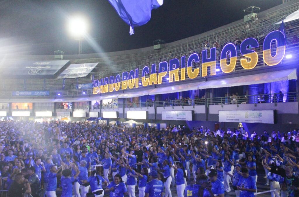 A porta-estandarte, Marcela Marialva, evoluiu com “Eu Escolhi Ser Caprichoso”. Já a rainha do folclore, Cleise Simas, dançou ao som de “Estrela Colibri”. As duas itens evoluíram com toadas de 2026, que já são sucesso entre os torcedores azulados.