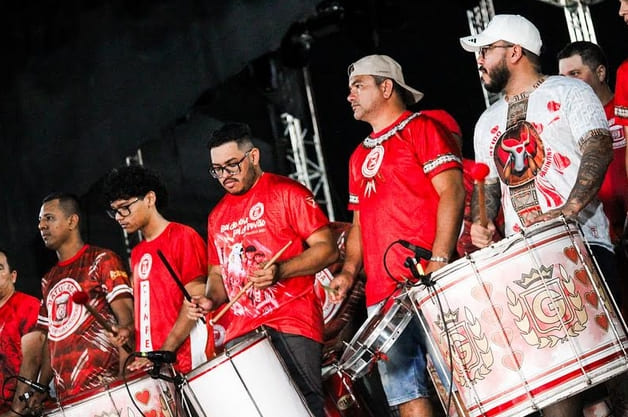 Representando o boi Garantido, a batucada também realizou passagem de repertório e alinhamento rítmico, compondo a sonoridade que acompanhará as apresentações. O mestre Francisnaldo Pinheiro adiantou novidades preparadas pelo grupo. “A batucada do Garantido chega ao Carnaboi com um repertório especial e surpresas pensadas para envolver a torcida. Estamos trabalhando arranjos e dinâmicas que reforçam a identidade sonora do boi e contribuem para a energia das apresentações”, ressaltou.