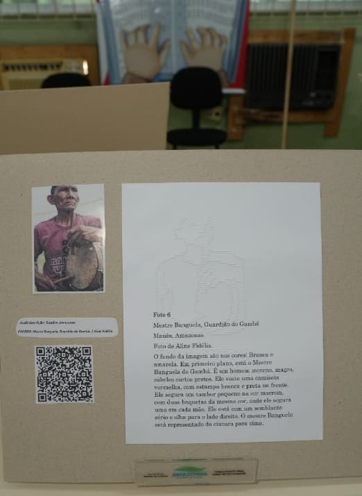 Segundo o gerente da Biblioteca Braille, Gilson Mauro, a proposta reforça o compromisso histórico da instituição com a acessibilidade. “A nossa secretaria trabalha há 26 anos com acessibilidade. E como Manaus está completando 356 anos, achamos importante celebrar com uma exposição de fotos acessíveis. A Aline topou a ideia e nós trouxemos as oito fotos para cá. Todas foram passadas para o braille, com legenda e QR Code, para que as pessoas com deficiência visual pudessem participar e conhecer Maués”, destacou.FOTO: Aguilar Abecassis/Secretaria de Estado de Cultura e Economia Criativa