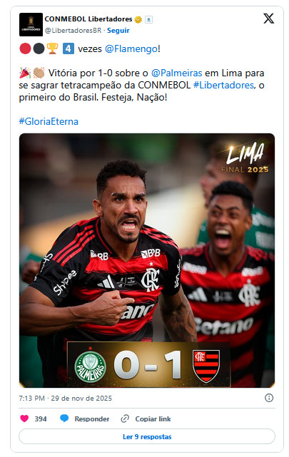 Flamengo vence Palmeiras e vira 1º brasileiro tetra da Libertadores