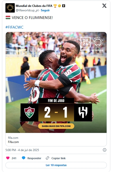 No duelo entre a equipe de menor investimento das quartas de final da Copa do Mundo de Clubes da Fifa e uma das equipes de maior poderia financeiro da competição, o Fluminense derrotou o Al-Hilal (Arábia Saudita) por 2 a 1, na tarde desta sexta-feira (4) no Camping World Stadium, em Orlando, e se classificou para as semifinais, dando uma prova de que o futebol ainda é um esporte que ainda é decidido por fatores além do poder de investimento dos times.