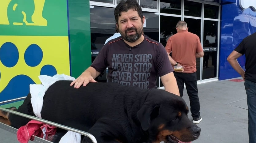 Laercio de Araújo Junior, motorista de aplicativo, procurou a unidade para tratar seu animal, um Rottweiler chamado Ragnar, de 6 anos, que teve paralisia dos movimentos das patas traseiras. Na oportunidade, o tutor fez agradecimentos ao estado e ressaltou a importância do hospital.