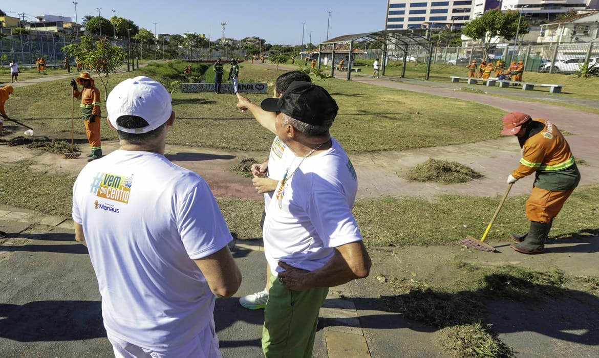 O “Mutirão no Centro” contempla ações de drenagem, manutenção de luminárias, recuperação de calçadas