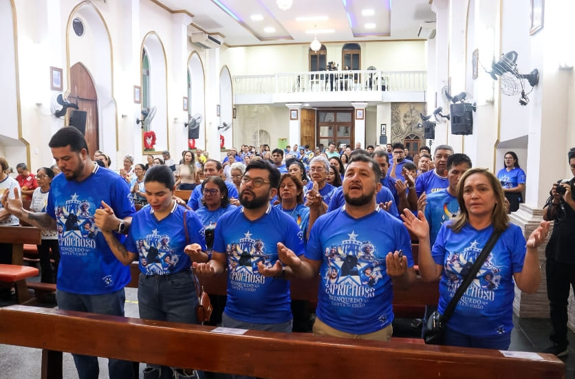 A celebração dos 112 anos do Boi Caprichoso foi marcada por uma missa em ação de graças realizada na noite desta segunda-feira (20), na Paróquia Sagrado Coração de Jesus, em Parintins. O ato religioso foi celebrado pelos padres Benedito Teixeira e Edinel Wilison Silva, reunindo diretoria, Conselho de Arte, marujeiros, Raça Azul, dançarinos, sócios e torcedores do bumbá.