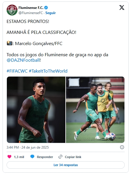 O Fluminense entra em campo, a partir das 16h (horário de Brasília) desta quarta-feira (25) no Hard Rock Stadium, em Miami, para enfrentar o Mamelodi Sundows (África do Sul) em busca de uma vitória que lhe garanta presença nas oitavas de final da Copa do Mundo de Clubes.