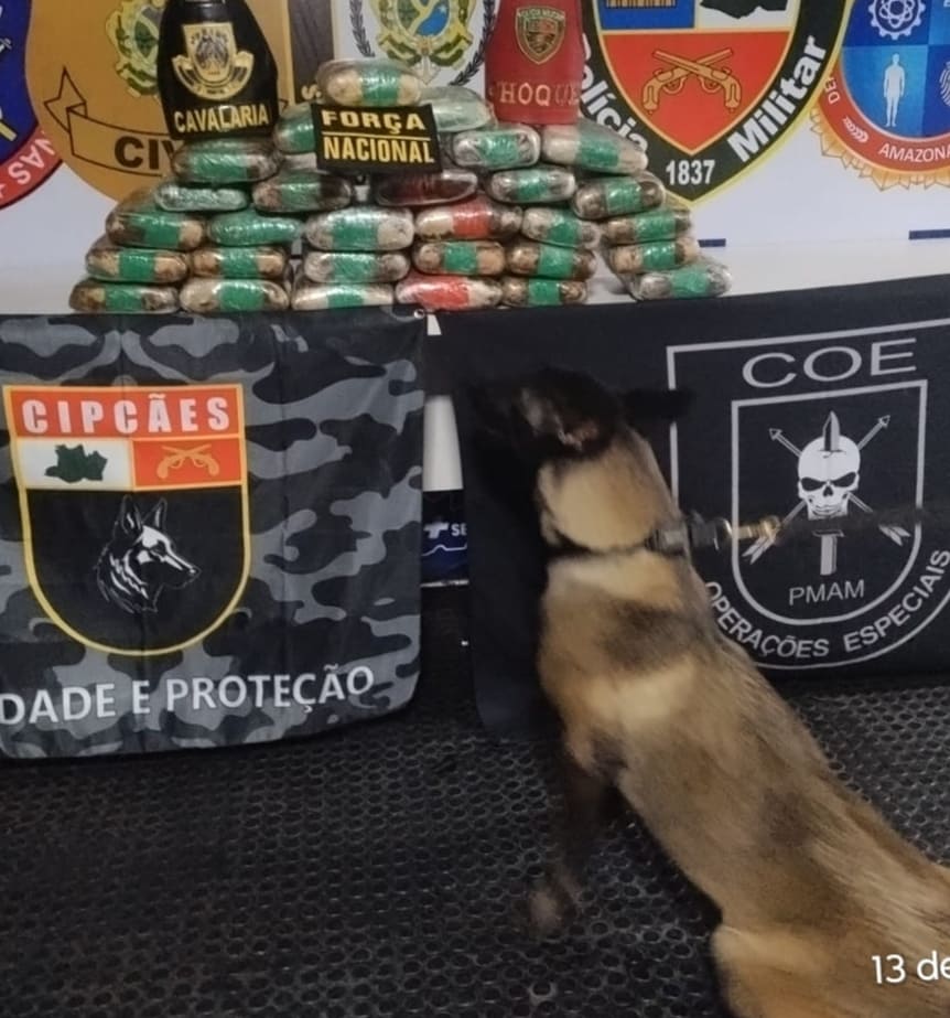 A primeira abordagem foi realizada ainda na madrugada. Durante o procedimento realizado em uma embarcação oriunda de Tabatinga, a cadela policial Athena, da Companhia Independente de Policiamento com Cães (CipCães), sinalizou a presença de drogas dentro do objeto. Os policiais militares inspecionaram o objeto e encontraram mais de 13 quilos de maconha do tipo skunk.