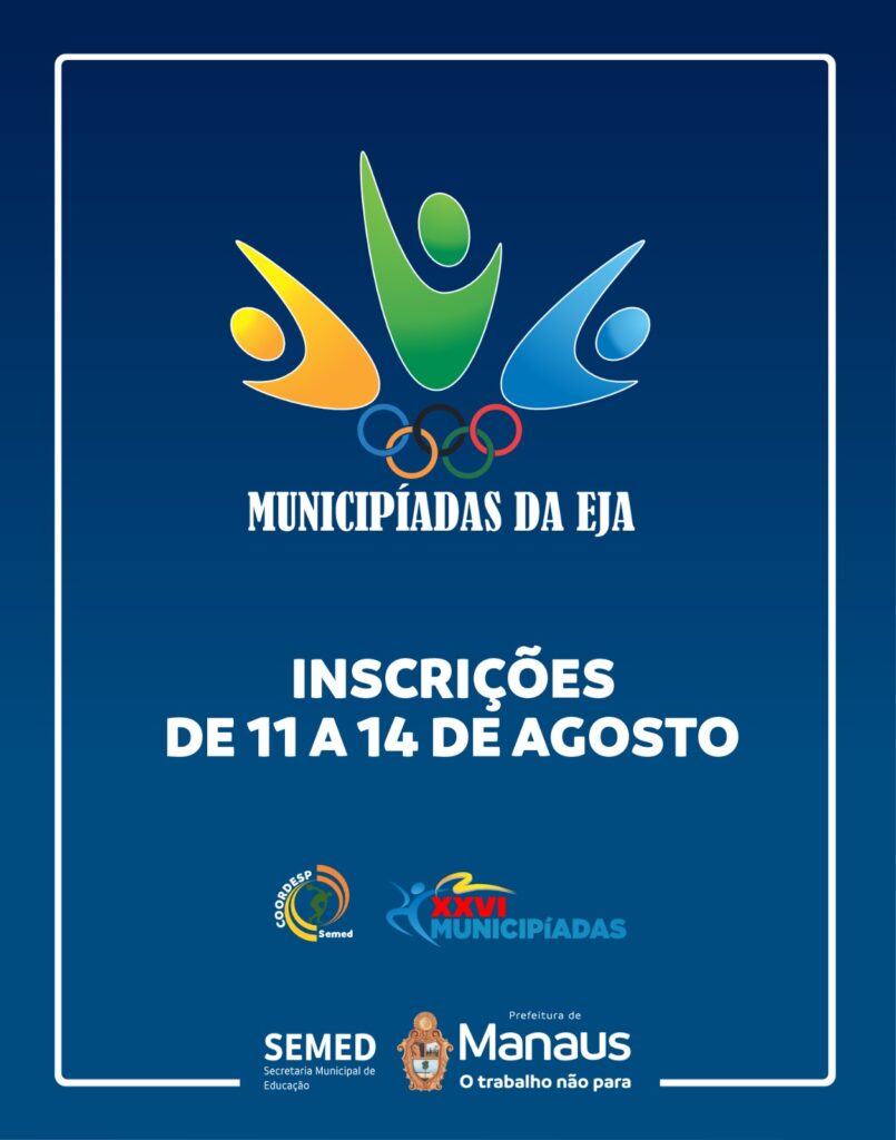 A Prefeitura de Manaus, por meio da Secretaria Municipal de Educação (Semed), realiza, nesta segunda-feira, 11/8, as inscrições para que estudantes da Educação de Jovens e Adultos (EJA) participem das “Municipíadas da EJA 2025”. O cadastro pode ser feito on-line, até a quinta-feira, 14/8, pelo site https://copafacil.com/-d99tj. Essa ação é uma iniciativa que busca promover esporte, cultura e integração entre escolas e comunidades escolares.