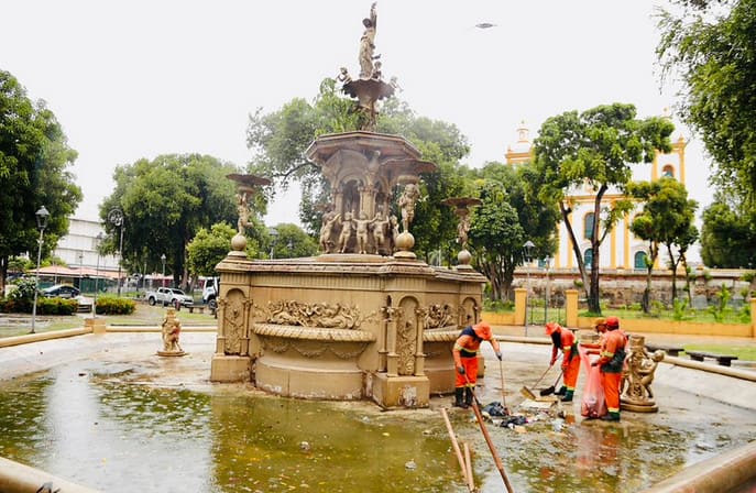 A Prefeitura de Manaus, por meio da Secretaria Municipal de Limpeza Urbana (Semulsp), intensificou, na tarde deste domingo, 11/1, as ações de limpeza na praça da Matriz, no Centro, zona Sul. Os serviços, que tiveram início ainda nas primeiras horas do dia, foram retomados após novos resíduos serem descartados de forma irregular no local, o que exigiu o retrabalho das equipes municipais.