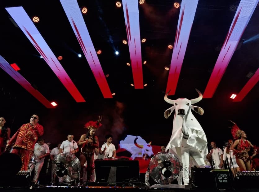A noite começou com a participação especial das bandas locais Andiroba com Sal e Banda Cavalo Suado abrindo o show do Rodrigo China e Banda, que levantou o público com o repertório musical atualizado. Em seguida, a festa ficou ainda mais animada com as apresentações dos bois Caprichoso e Garantido, mostrando que a cultura popular permanece viva e forte na história o munícipio.