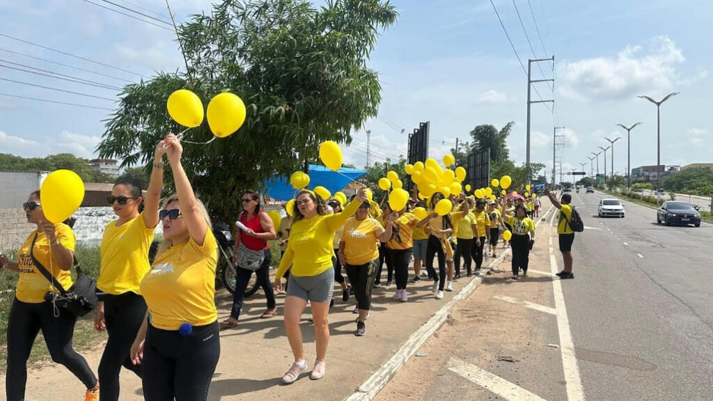 O grupo é formado por alunos das turmas do Projeto Mais Vida, do Centro de Convivência da Família Padre Pedro Vignola, situado na Cidade Nova, zona Norte. Após a caminhada, os participantes soltaram balões amarelos com intuito de sensibilizar a população para os cuidados com a saúde mental e prevenção ao suicídio.