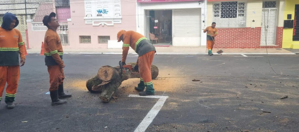 A Prefeitura de Manaus, por meio da Secretaria Municipal de Limpeza Urbana (Semulsp), vem promovendo um amplo mutirão de revitalização no centro histórico da capital amazonense. O trabalho, já consolidado como rotina diária, reúne serviços de poda de árvores, capinação, pintura de meios-fios, lavagem de ruas, instalação de novas lixeiras e remoção de estruturas irregulares, trazendo nova vitalidade à região central da cidade.