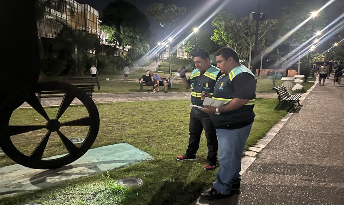 Durante a vistoria, usuários também foram orientados a baixar o aplicativo Manaus + Luz para registrar futuras ocorrências como luminárias piscando, apagadas
