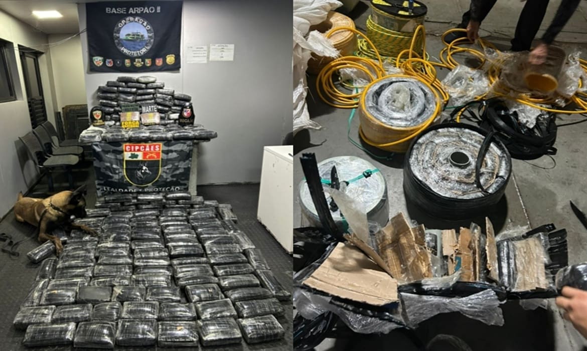 As drogas foram apreendidas em rolos de mangueiras e cordas