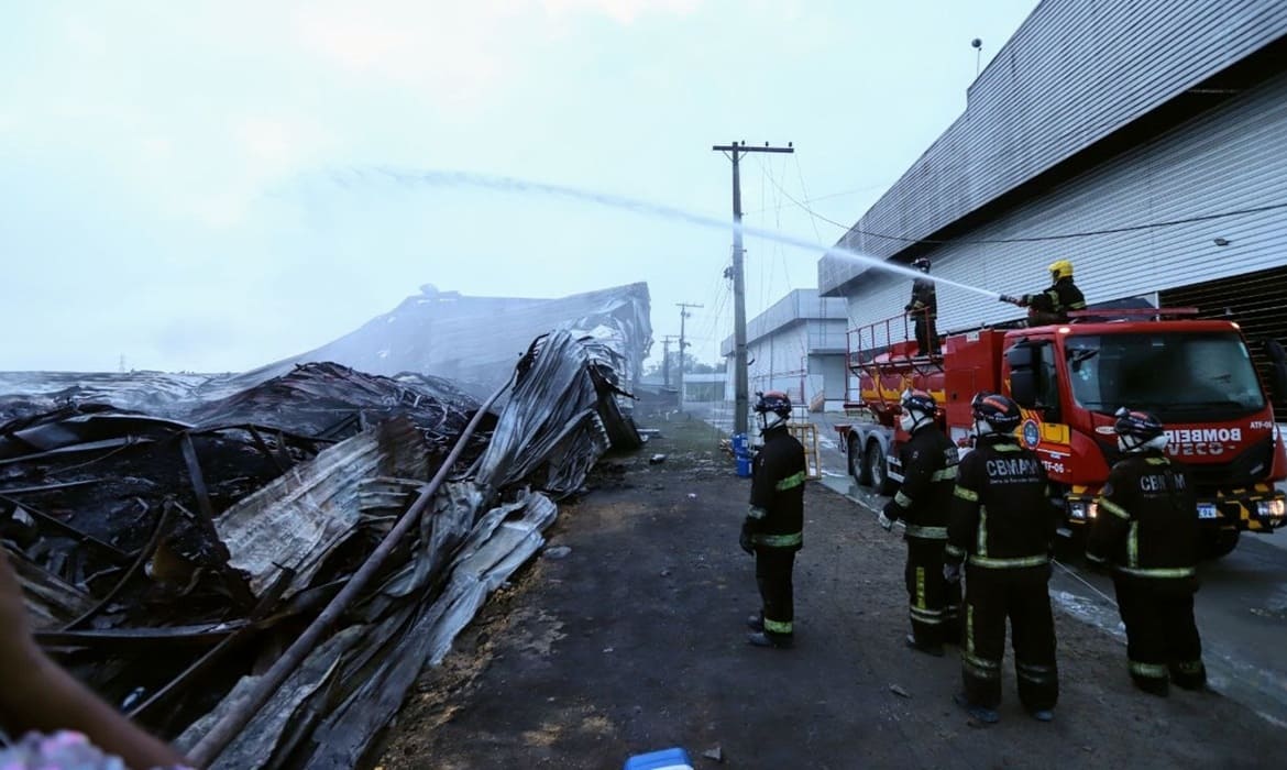 Bombeiros do AM extinguem focos de incêndio em 48h no Distrito 2 Corporação faz agora o rescaldo do local do incêndio com a remoção dos entulhos queimados