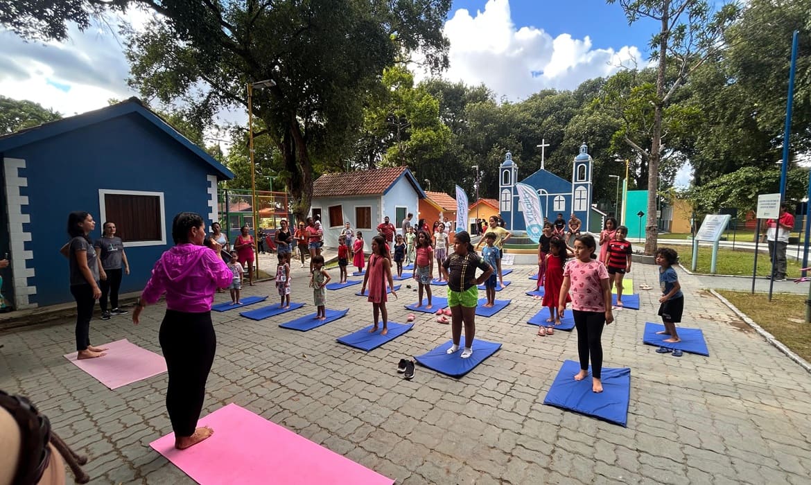 Atividade de Pilates Kids agrada crianças em colônia de férias da PMM