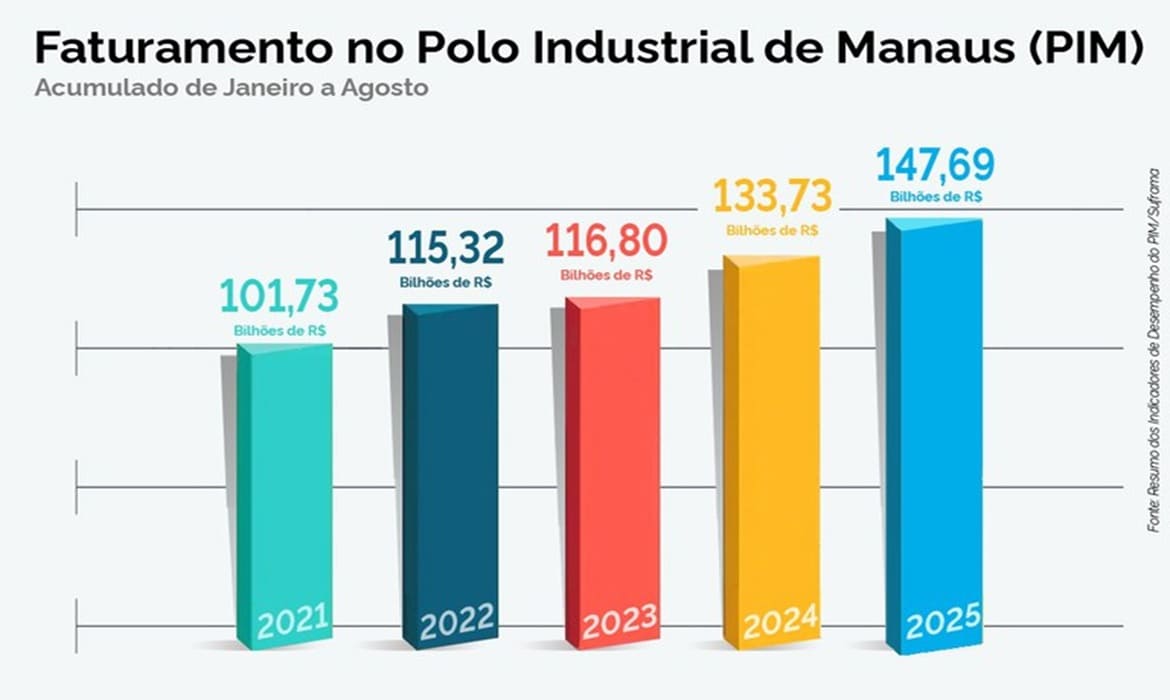 Faturamento do primeiro mês de 2026 no Polo Industrial de Manaus (PIM) alcança R$ 18,28 bilhões e, em dólar.