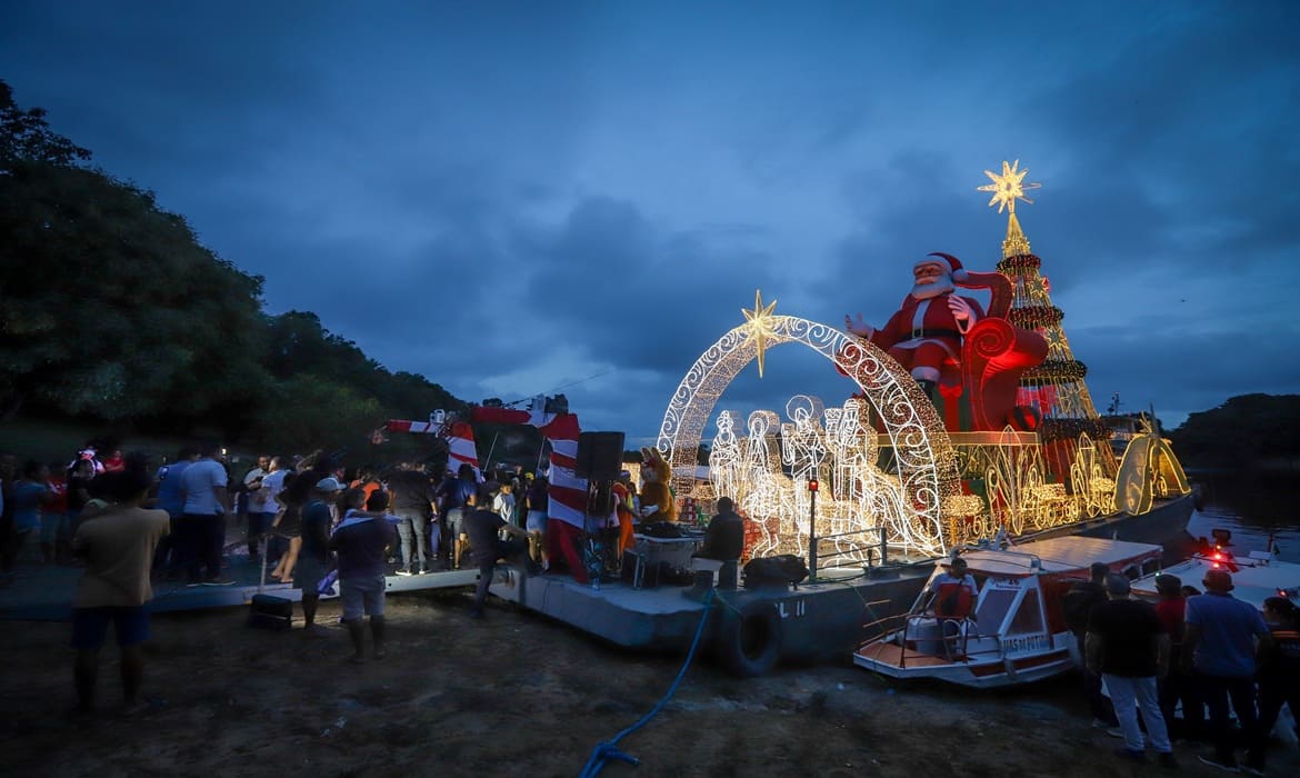 O projeto, que teve início no dia 1º de dezembro, percorreu os rios amazônicos com uma balsa natalina.