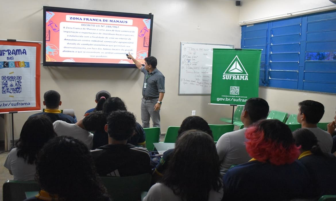 O projeto Suframa nas Escolas tem como objetivo aproximar a Autarquia da comunidade escolar, promovendo o conhecimento sobre o modelo Zona Franca de Manaus