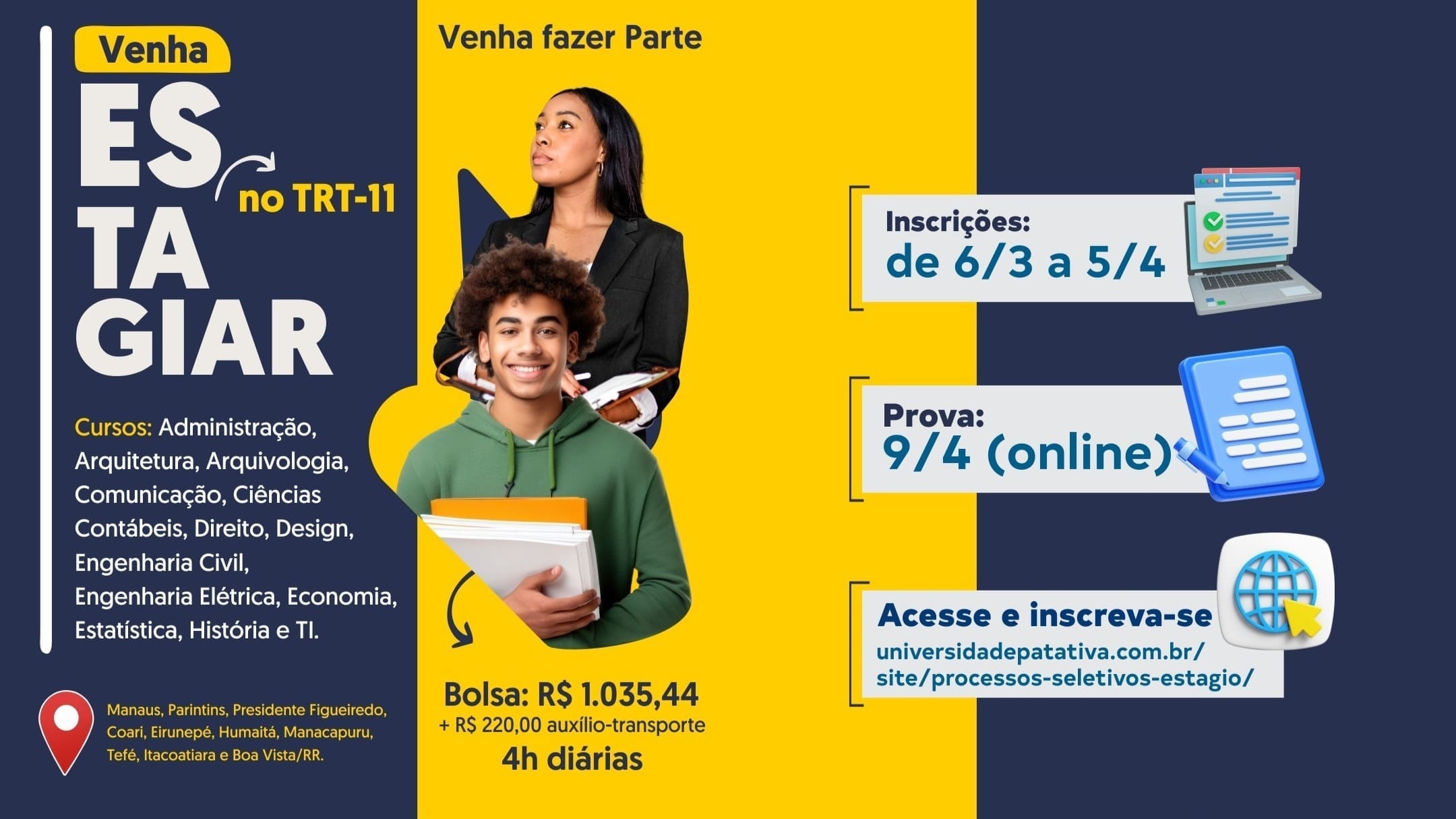 TRT-11: Estágio remunerado com inscrição até domingo, 5/4