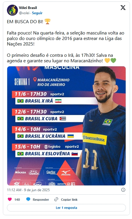 Jogos do Brasil na Ligas das Nações de Vôlei Maculino